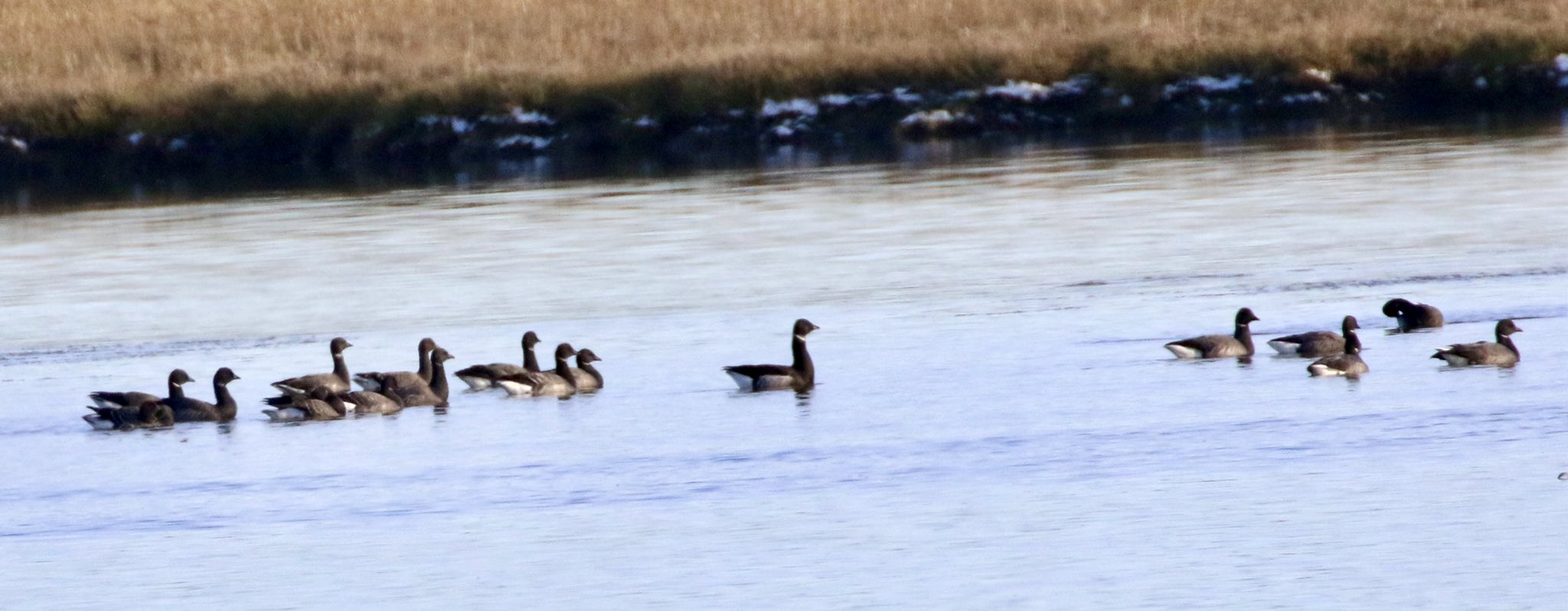 Kate Plater – Black Brant (centre) among dark-bellied Brent Goose flock – Middlebere Channel