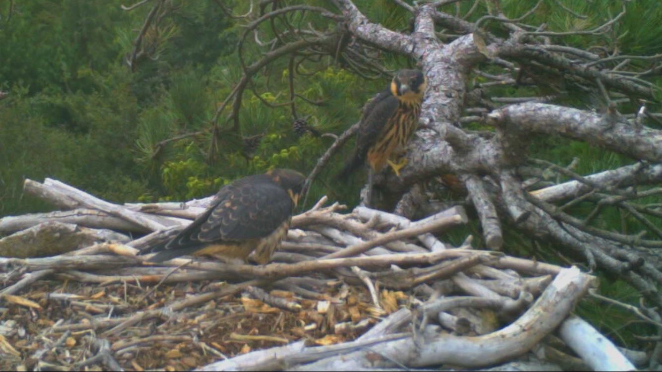 Hobby juveniles – artificial Osprey nesting platform in the harbour area