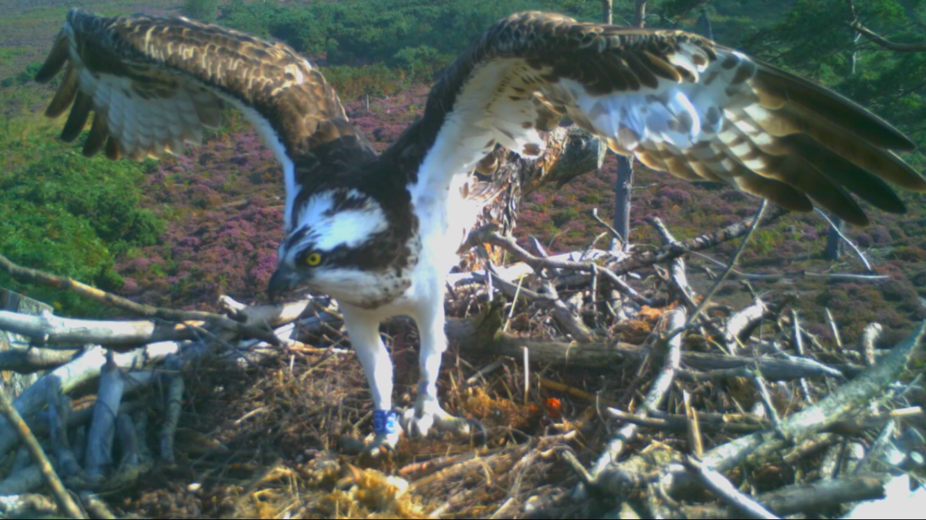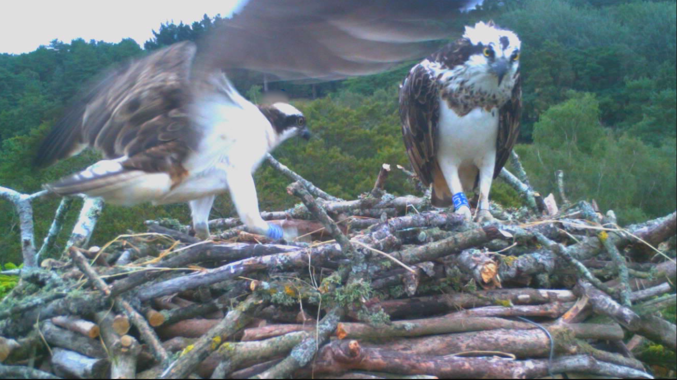 From the Osprey Cruise, we saw 3 adults hunting in the Wareham Channel this morning, as well as a sub-adult male Marsh Harrier, and a nice Green Sandpiper flyby. One of the translocated juvenile Osprey (371) was photographed on an artificial nesting platform in the harbour, as well as a lovely shot of 2 juvenile Hobby, captured with our motion-sensitive cameras. Also, there was an un-ringed adult male Osprey on the webcam nest today, with another hassling him above. This evening a Cattle Egret was at Swineham GP and there were 4 Curlew Sandpiper in Brands Bay