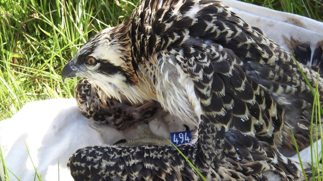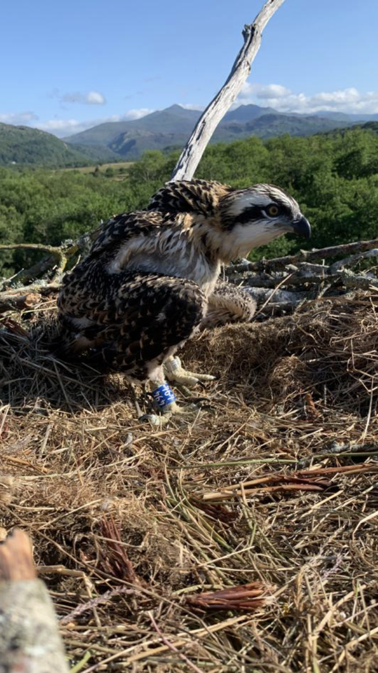 Secondly we had an exciting update from the ‘Friends of the Ospreys’ team up in Wales who’ve been keeping us up to date with the progress our translocated female Osprey 014, who we raised and released here in the harbour in 2018, and is now on a nest, raising a single chick herself at a site called Pont Croesor. This is a big milestone for the project, to actually see the first chick being raised and ringed today as a direct result of our Poole Harbour translocation project is just amazing. Because as we’ve said before, one of the main objectives is to get all these populations interconnecting which over the coming years we’re sure will be accomplished. Below are a series of photos courtesy of the ‘Friends of the Ospreys’ team as they went to the nest site today to ring the single chick which turned out to be a male, and is now ring number 494. As it turns out 014 actually laid 3 eggs, but likely due to the cold and wet spring, only the one progressed enough to hatch. Good luck on your travels in the future young man.