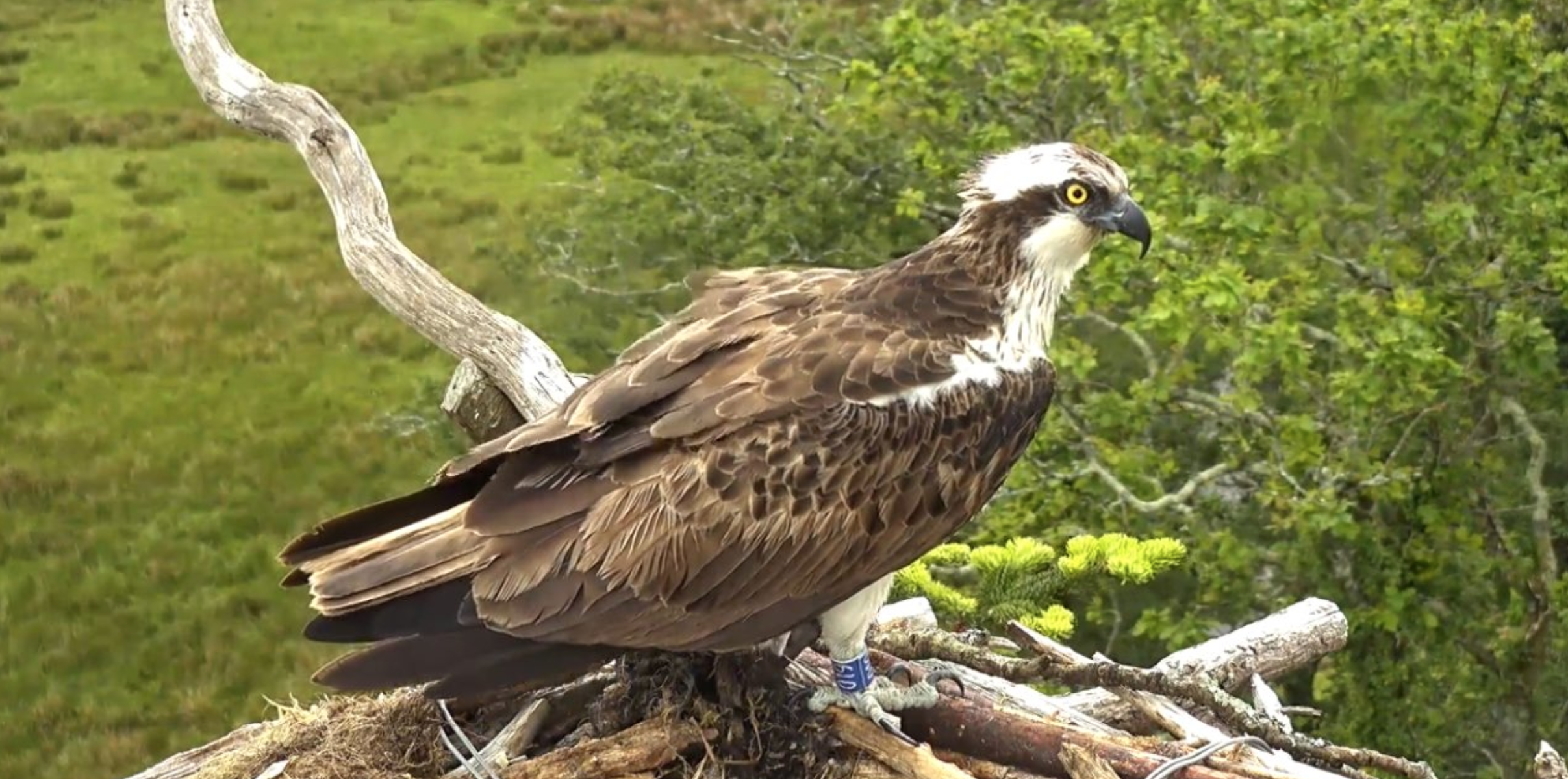 There’s plenty to report over the last two days so we’ll cut right to it! The sudden shift in weather has brought on an arrival of 2-year-old Osprey into the country. Within the harbour, a newly arrived, unringed Osprey delighted observers at Arne on the 5th after the behaviour of CJ7 and 022 around the nest site early morning raised suspicions of a potential nearby intruder. Confirmation was then secured when the unringed Osprey landed on one of the other harbour platforms just before 11am. We suspect that most of the Middlebere Osprey sightings that day related to this newly arrived individual. Then at 2.50pm, 019 (a translocated female that has been recorded several times in at Gunjur Quarry, The Gambia since her release in 2019) landed on the Glaslyn nest in Wales! Amazingly, 019 is the second Poole Harbour bird to visit the site, along with 014 who is currently breeding on the Pont Croesor (Friends of the Ospreys) nest!