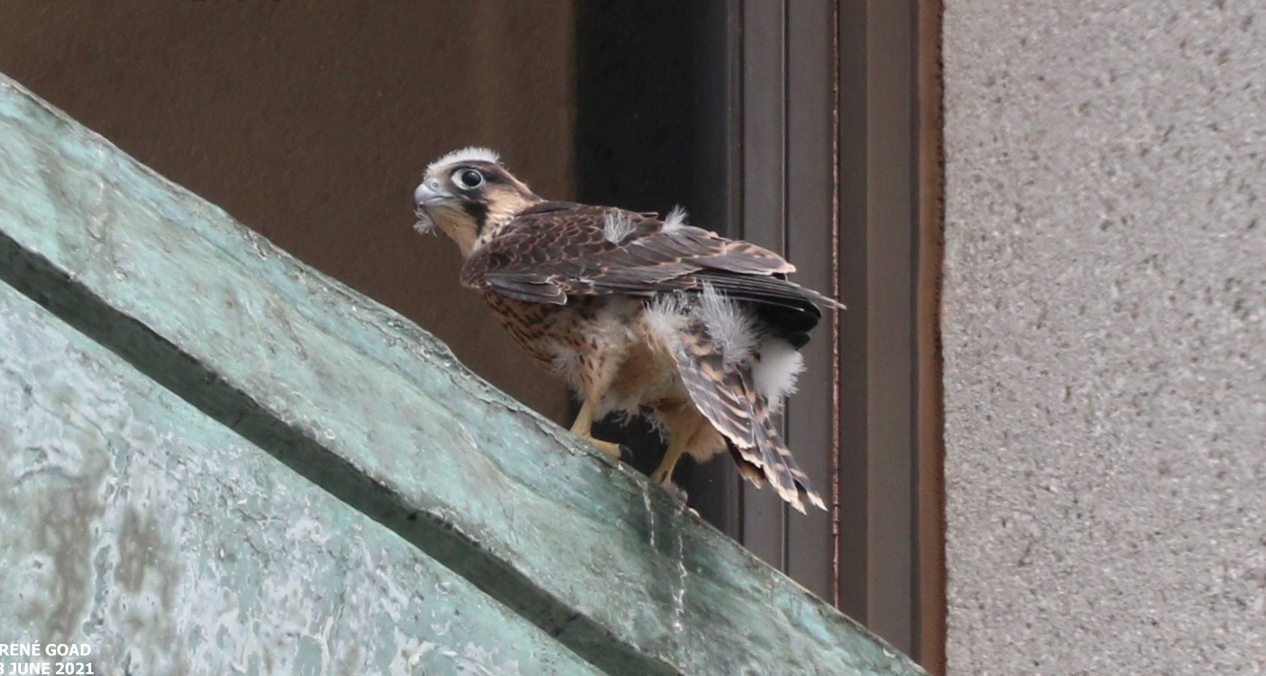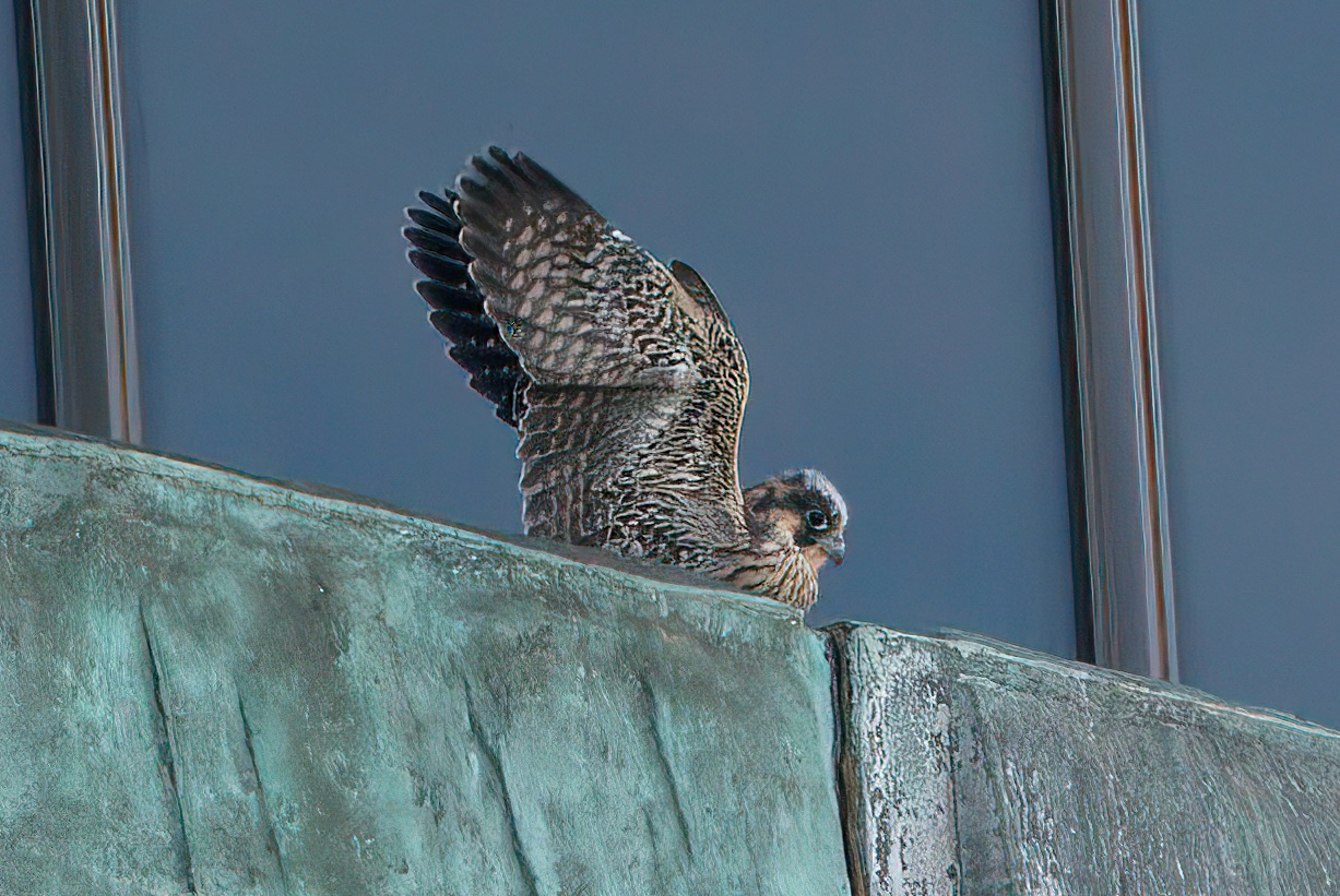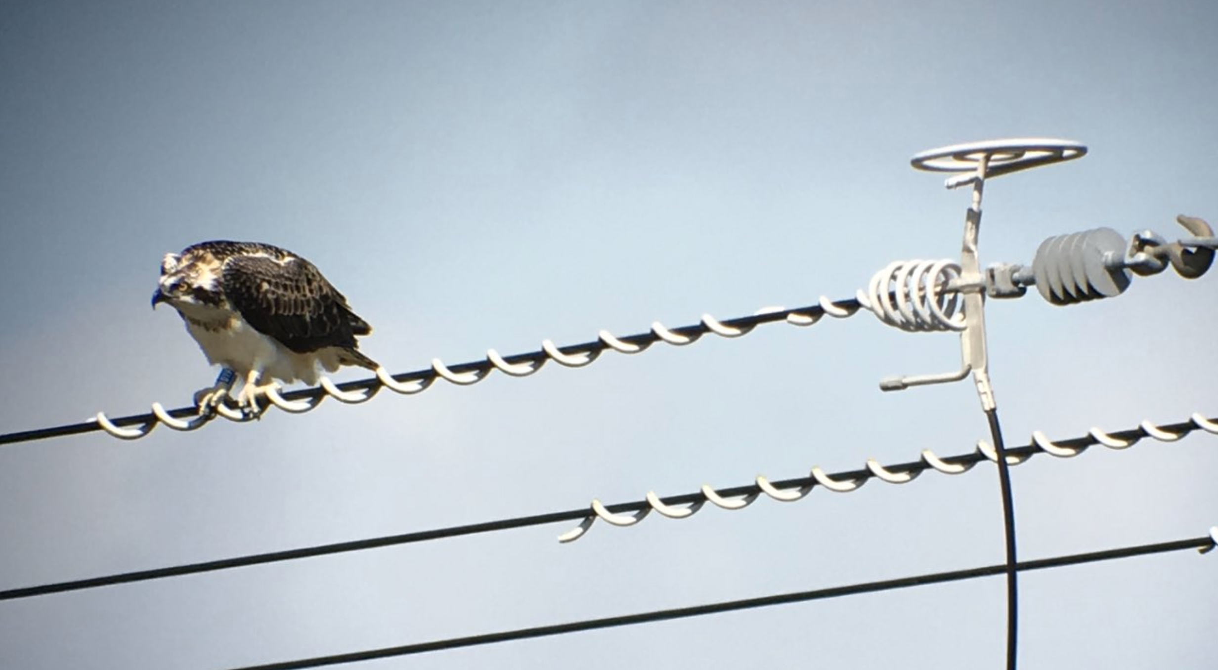 While out conducting a breeding Redshank survey the previous day (June 4th), we were treated to views of male Osprey 022 catching a large Mullet near the mouth of the River Frome, framed beautifully with Corfe Castle in the background. An early start in Poole Town offered views of the male Peregrine circling the George roundabout a few times before perching on a crane opposite Barclays.