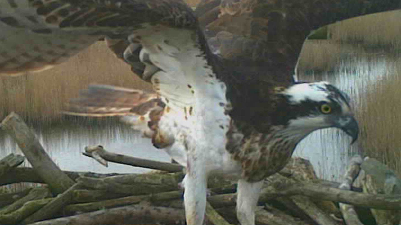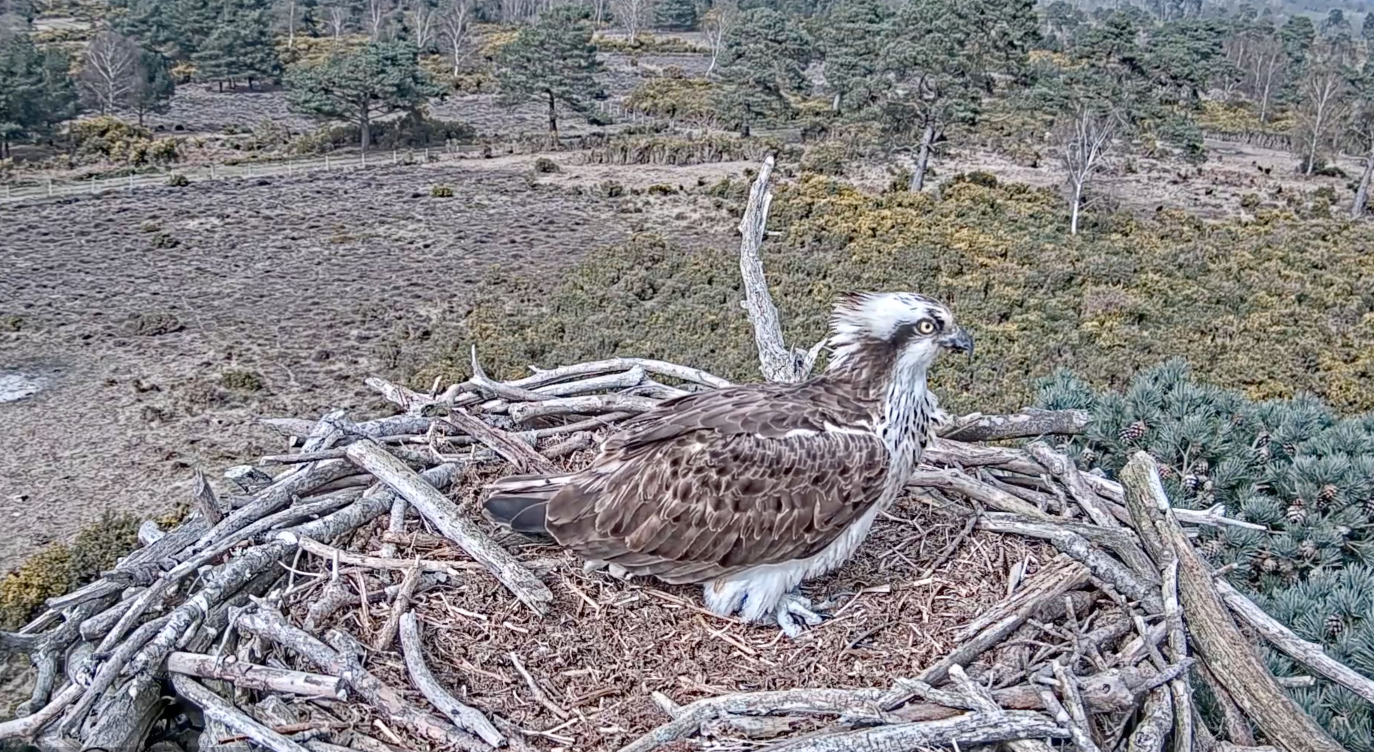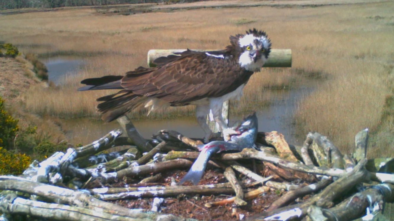 The wind swung today to the SW but it was still blimmin cold! It seems like with the change in wind direction the Ospreys that have been using Middlebere have finally moved on with no photos from the Middlebere platform for the first time since March 31st. However whilst CJ7 was on the nest cam around 5:30pm another Osprey was seen fishing out in the Wareham Channel which promptly caught a flatfish and took it to the Keysworth shoreline to feed. A Raven came and landed next to it, and structurally the Osprey seemed quite a lot smaller suggesting it could be a male. We of course have no idea how the season will pan out this year, but its worth bearing in mind that there’s a chance CJ7 won’t pair up again this summer whilst we wait for some/more of our translocated males to arrive back. There’s been no shortage of migrant Osprey in the harbour so far this spring and CJ7 has probably encountered a good number of them with her daily outings around the harbour but so far, but they’re all probably established breeders further north meaning there’s little chance of them hanging around. As we move further into April and May the non-breeding Osprey begin arriving back and exploring, and it’s during this period ‘wandering’ males could become interested in the harbour and CJ7. A Peregrine was causing mayhem out in the Wareham Channel too flushing 300+ Black-tailed Godwit. A Spoonbill was in Middlebere, a Spotted Redshank was at Lytchett Fields with 1 Little Ringed Plover, 2 Ringed Plover and where 2 Osprey were also seen briefly over the fields, but not togther sadly. Also 1 Willow Warbler and 8+ Blackcap there too.At Swineham there were still 250+ Sand Martin, 20+ Swallow and a Little Ringed Plover on the Swineham Scrapes. Swallow were also pushing through again in small numbers and a Red Kite drifted over Studland. There was also a random Barnacle Goose on the Brownsea Lagoon which is a nice April record.