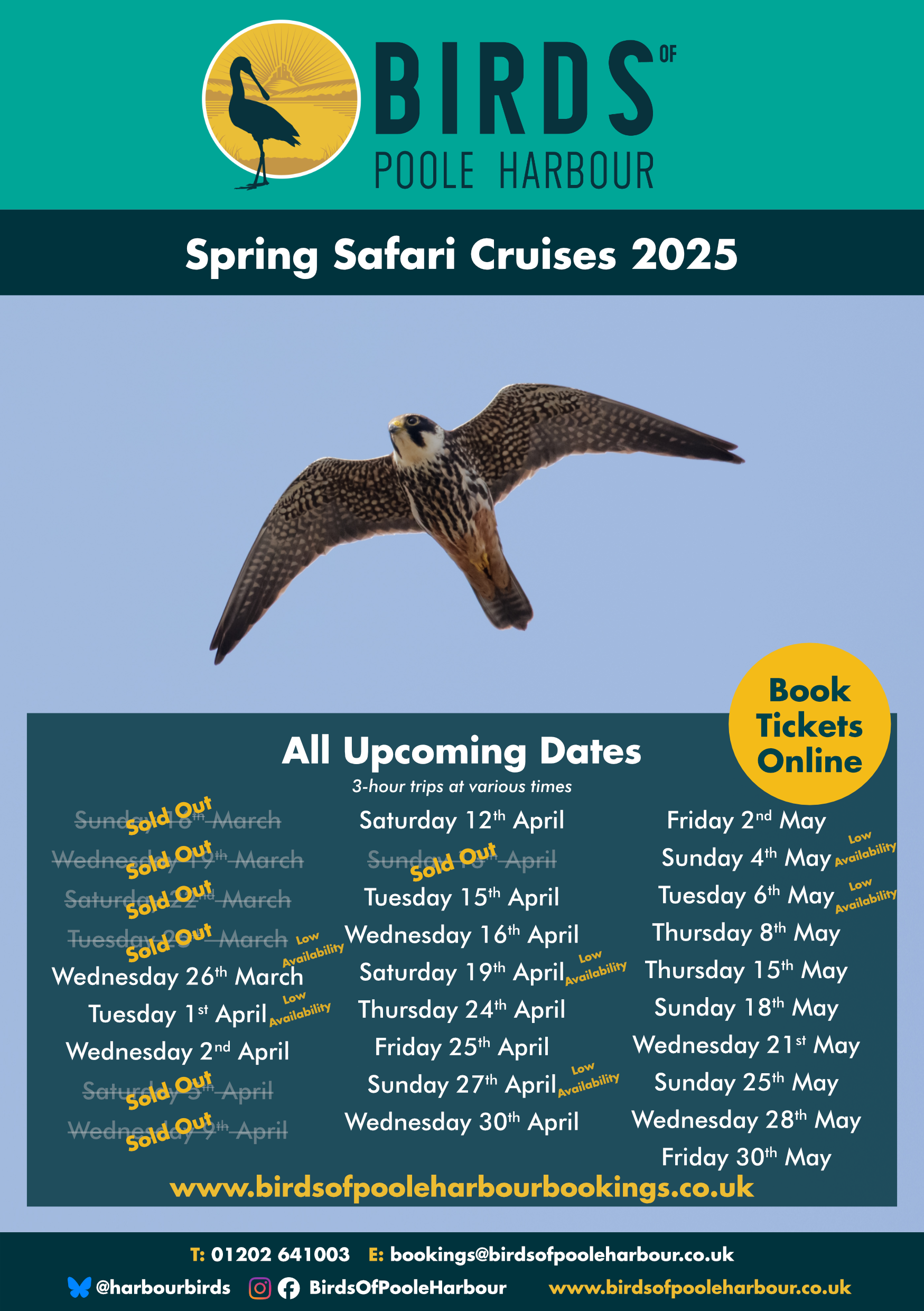 Once again, the harbour was at it’s late autumn best this afternoon, with the mud flats fast filling with the sound of wetland birds as they moved to and from various feeding areas. From our Autumn Safari this afternoon female White-tailed Eagle G466 caught a fish fairly close to our boat, although frustratingly did so just behind a spit of salt marsh, however it didn’t stop us from experiencing the absolute ease these birds are able to catch a fish as she twisted effortlessly a few meters above the water before simply ‘plonking’ down into the water to retrieve her prize which looked to be either a Mullet or a Bass. Even more interestingly was the fact we later saw her flying low across the mud from the north side of the Wareham Channel to the south side, directly over hundreds of waterfowl and waders, and other than 10 Avocet that decided to have ‘a pop’ at her, not a single bird flinched, seemingly carrying on with their feeding routine as if there was no danger. Also in the Wareham Channel were 4 Glossy Ibis, 4 Marsh Harrier, 1 Merlin, c500 Black-tailed Godwit, c500 Dunlin, 3 Greenshank, 1 Kingfisher, c10 Grey Plover, 24 dark-bellied Brent Geese and plenty of Teal, Wigeon and Gadwall. Round the back of Green Island a small raft of 6 Red-breasted Merganser were settled and the Brownsea Lagoon had c60 Spoonbill, 9 Greenshank, c100 Avocet and 19 Bar-tailed Godwit. Another Red-breasted Merganser was close to the harbour mouth this AM too. This morning, a small goose sp with Graylags flew over the Lower Piddle Valley and was assumed to be a Pink-footed Goose.
